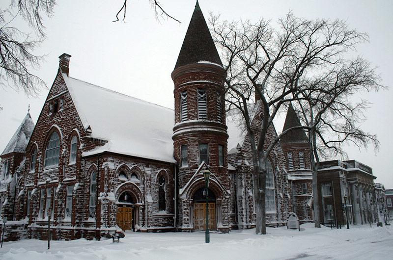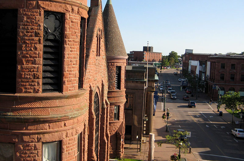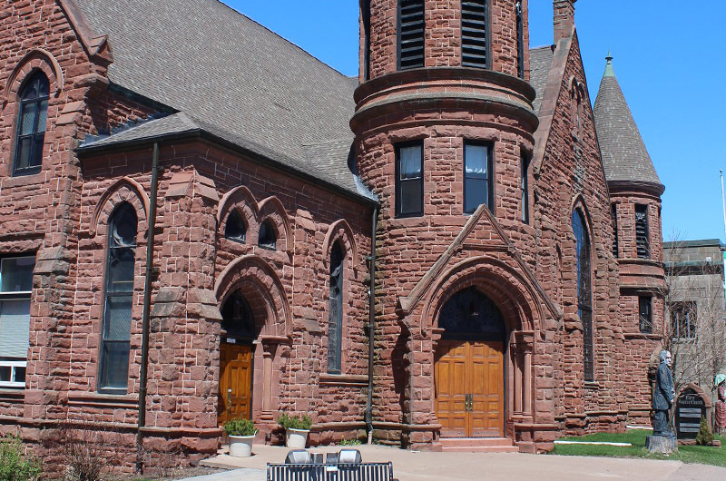 The church building has undergone an extensive restoration program over the past 10 years with more than $2.5 million worth of work completed. The original building cost $ 30,000 to construct. Designed by Mott, Myles, and Chatwin of St. John, NB and built by the Rhodes Curry and Company of Amherst, Amherst First Baptist Church is among many of the designated historical sites located in Amherst. The exterior of the building is red sandstone, quarried in Amherst and is representative of the materials used in the 1800s in Amherst. The building has been cleaned to remove the years of charcoal soot and reduce the effects of acid rain. Each stone has been cleaned and re-mortared to ensure the building will remain here for another century or more. Amherst First Baptist Church is designed in the Richardson Romanesque architectural style.